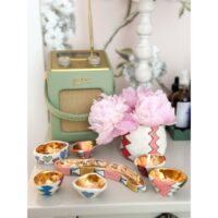 Handmade beautiful ceramic pieces that are unique finished with real gold. Made of porcelain and hand painted with bright under glaze. A mixture of gifts, tableware and homeware – perfect for family and friends. Prices range from £5-£250.